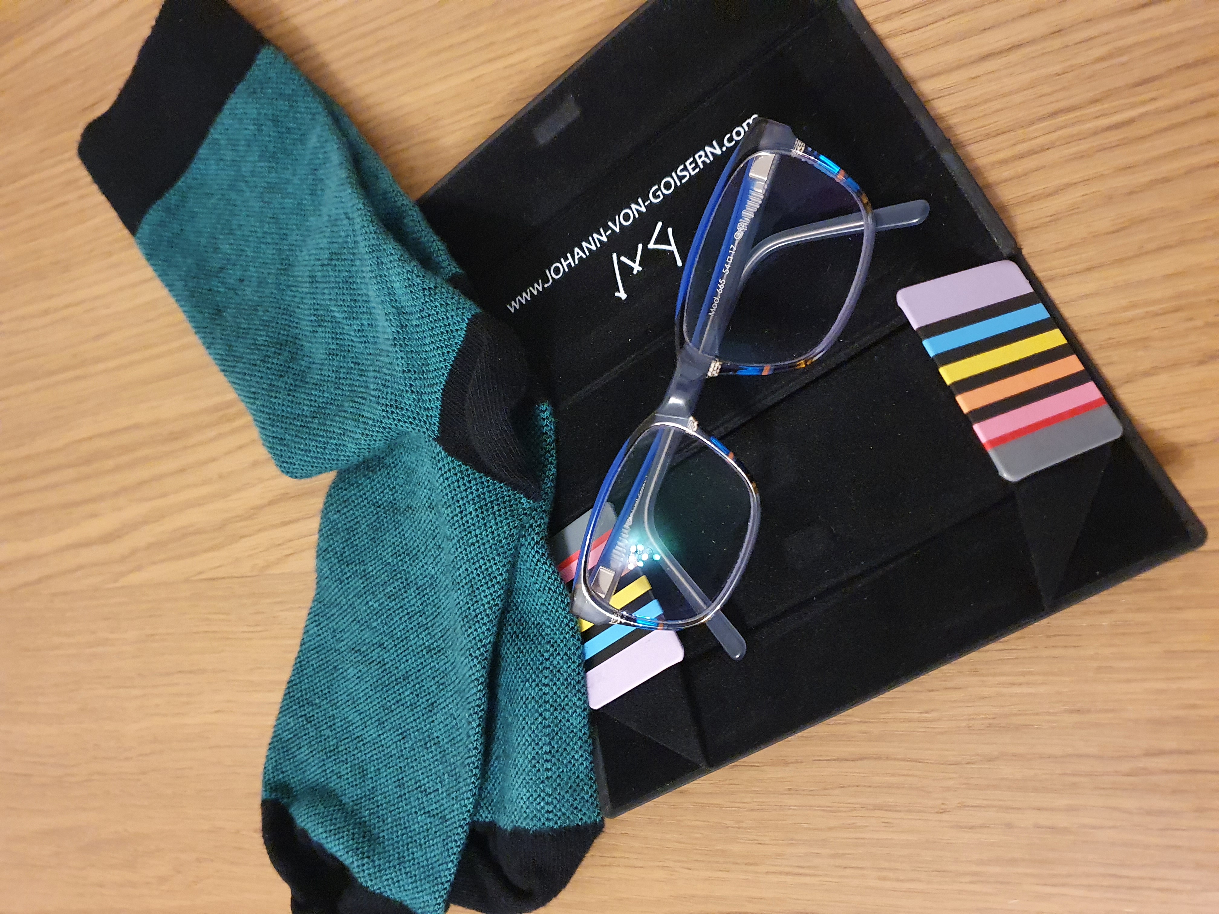 Now this next part may seem very cliched. I’ve heard people say that a pair of glasses can change your life. Yes, I’ve seen this first hand so many times when people who couldn’t see suddenly can see. It can be life changing to have your vision back. But that’s not what I mean by this. A good pair of glasses can have an effect on how a person feels, about themselves and how they present themselves and are perceived in the world. I have to say this pair of JVGs changed me. You see they didn’t really look right with my plain grey work suit. They looked out of place. They didn’t seem to match my “style”. Well, it turns out the grey work suit wasn’t my style. I never really felt comfortable in a plain grey suit but I thought that is what I had to wear. Having a lovely pair of colourful glasses to wear meant that I changed my wardrobe. I no longer wear the tired grey work suit, I wear clothes that reflect my personality with more colour and style. I now feel comfortable in what I wear for work as it’s more “me”. I wear chinos, nice shirts, blazers or jackets, I now have a love of pocket squares (I have around 8 now - my wife reminds me I can only wear one at a time!) and now I have a pair of green socks. All my socks before that were plain dark grey or black – for work – but now I can wear colour on my feet too. And you know what? I’m happier now than I was, I feel right with what I’m wearing rather than wearing what I think I’m supposed to which didn’t suit my style personality. Fast forward two years and I now have more pairs of glasses that I love, that reflect my style and that aren’t the “safe” option. Glasses that let me stand out as someone with really cool glasses. My biggest take away from this is glasses don’t have to be purely functional, they can be part of our personality, our own unique style and we can feel good about wearing them.